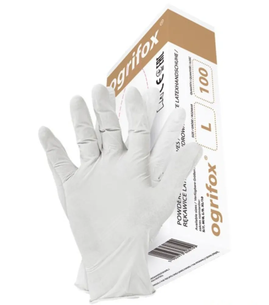Ogrifox OX-LAT rukavice púdrované biele 100 KS