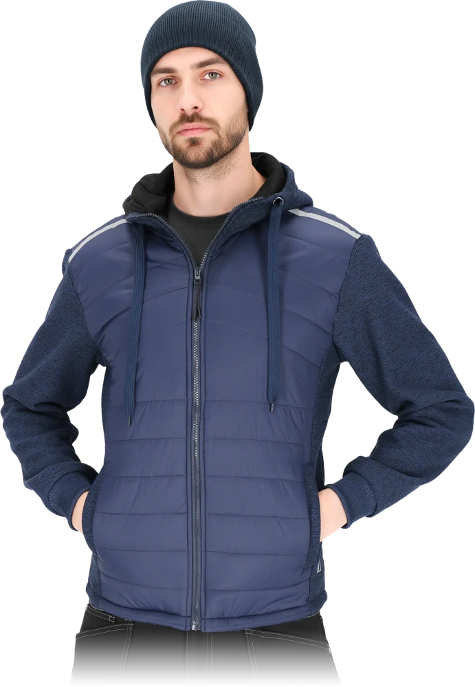 Hybridní pánská mikina.hlavní materiál: pletenina s fleecovou úpravou na vnitřní straně, 100% polyester, gramáž 370 g/m²prošívané vložky: 100% nylonová tkanina, gramáž 40 g/m²podšívka v přední části trupu 100% polyester, gramáž 140 g/m²podšívka v přední části trupu 100% polyester, gra... celý popis