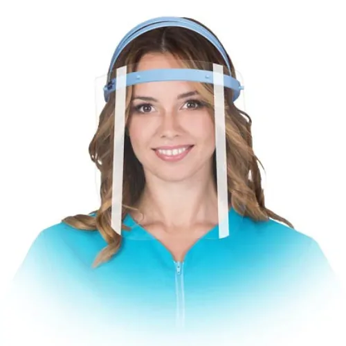 Obličejový štít skládající se z čočky, čelenky a elastického pásku.sklo vyrobené z PETmožnost zvednutí kryturozměry skla: výška 190 mm, šířka 280 mm, tloušťka 0,25 mmgumička vzadu se stahovacím mechanismem, díky kterému dobře sedíje obtížné dotknout se obličeje kontaminovanýma rukamachrání před jemn... celý popis