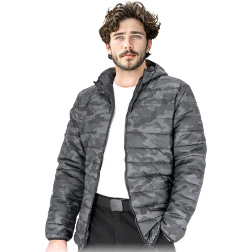 Pánská prošívaná, zateplená ochranná bunda.tkanina: 100% polyester, gramáž 65 g/m²podšívka 100% polyester, gramáž 180 g/m²podšívka 100% polyester taft 210T, gramáž 55 g/m²zapínání na zipkapuceve spodní části dvě kapsy na ziprukávy, kapuce a spodní část bundy zakončené elastickým lemem... celý popis