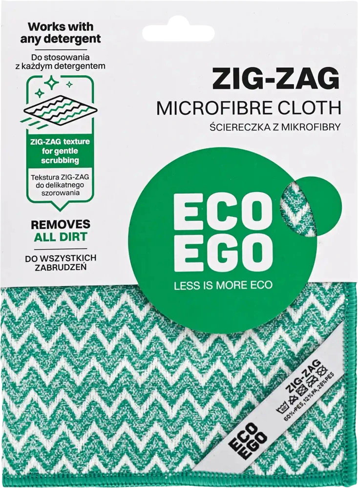 Kuchyňská utěrka z mikrovlákna ZIG-ZAG.vyrobeno z polyamidu, vláken barvených v roztoku a polyesteru získaného recyklacíuniverzální a multifunkční, lze použít k odstranění skvrn, usazenin a šmouh ze dřeva, konglomerátu, dlaždic, skla a keramikyMěkká strana dokonale rozpouští nečistoty a leští povrch... celý popis